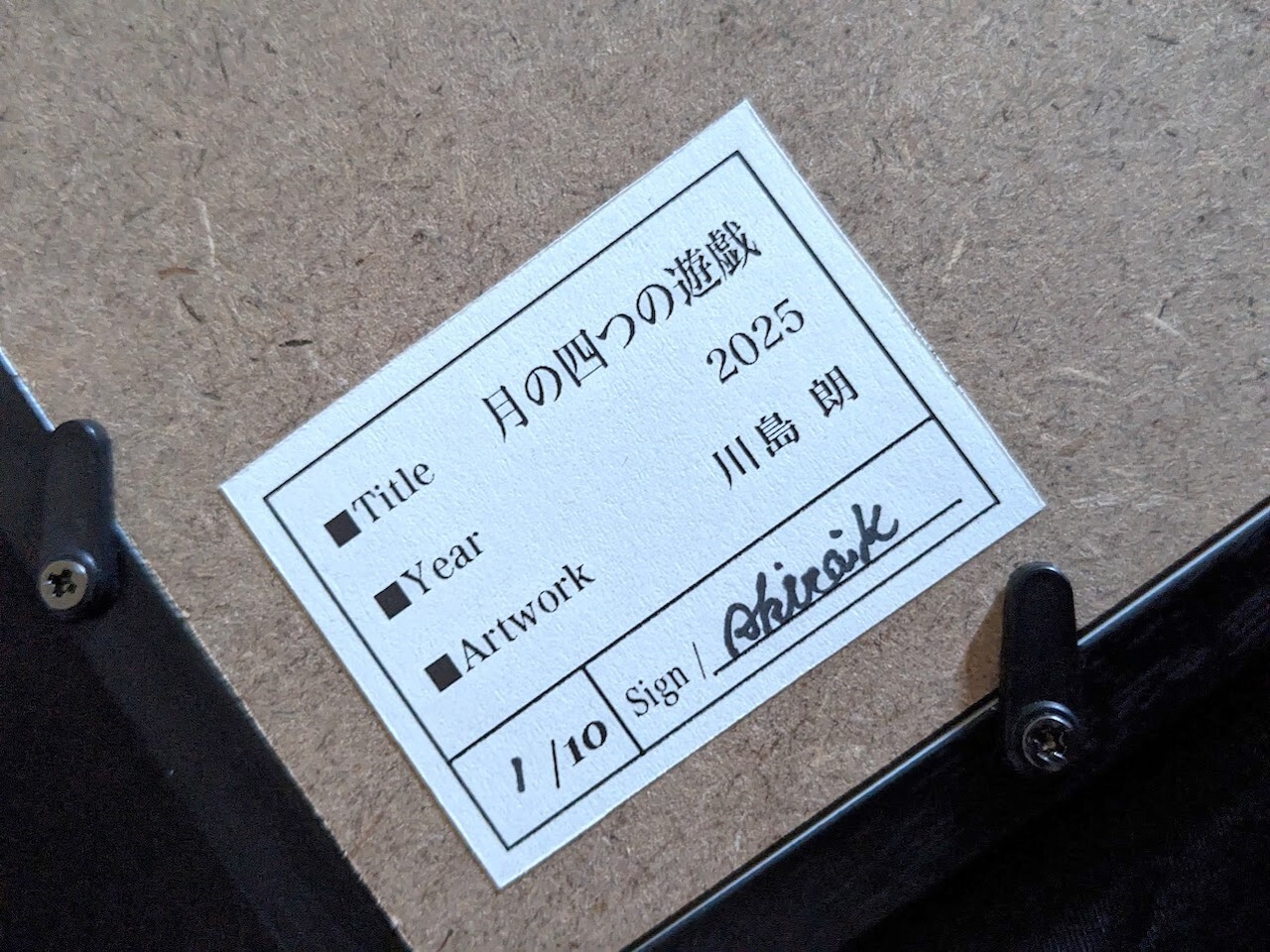 「四つの月面写真に、鉱物、自身の作品、機械部品、時計の内部パーツ写真などを合成したデジタルコラージュ作品。