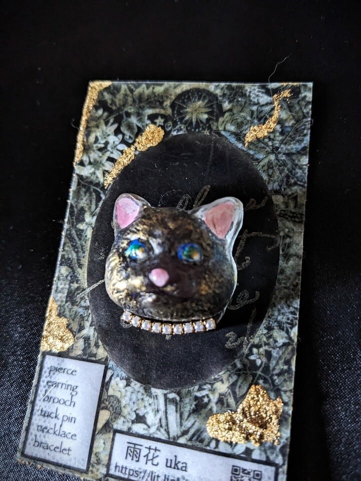 ac-18ブローチ:黒猫/雨花