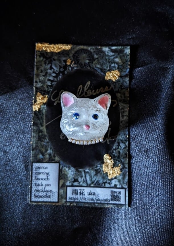ac-18ブローチ:黒猫/雨花
