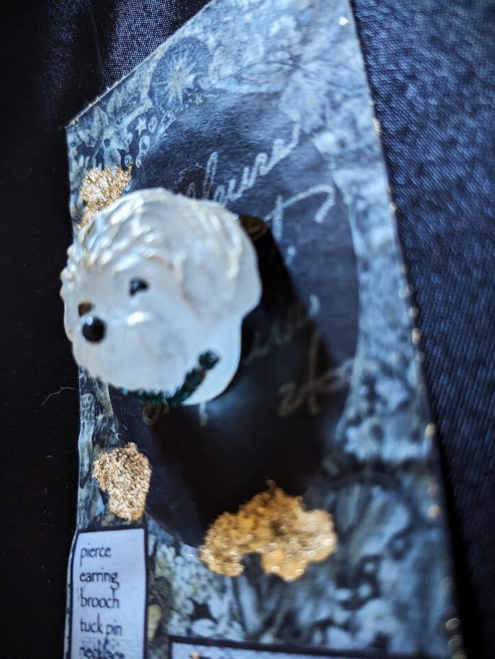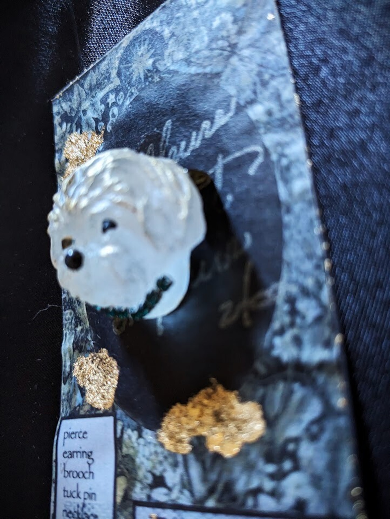 ac-18ブローチ:もふもふ犬(青首輪)/雨花