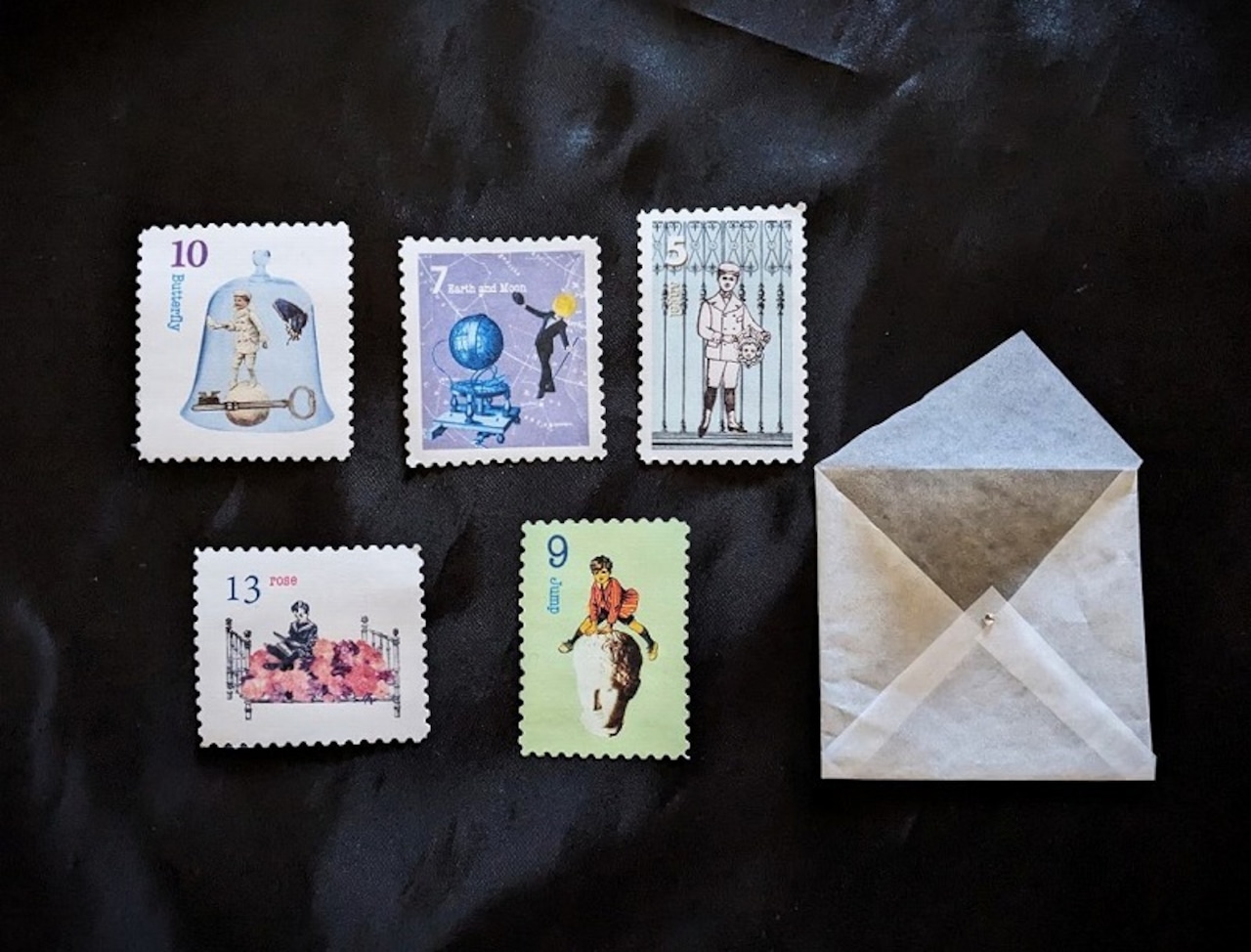 ギムナジウムイメージのコラージュ作品集(切手風作品5種セット)